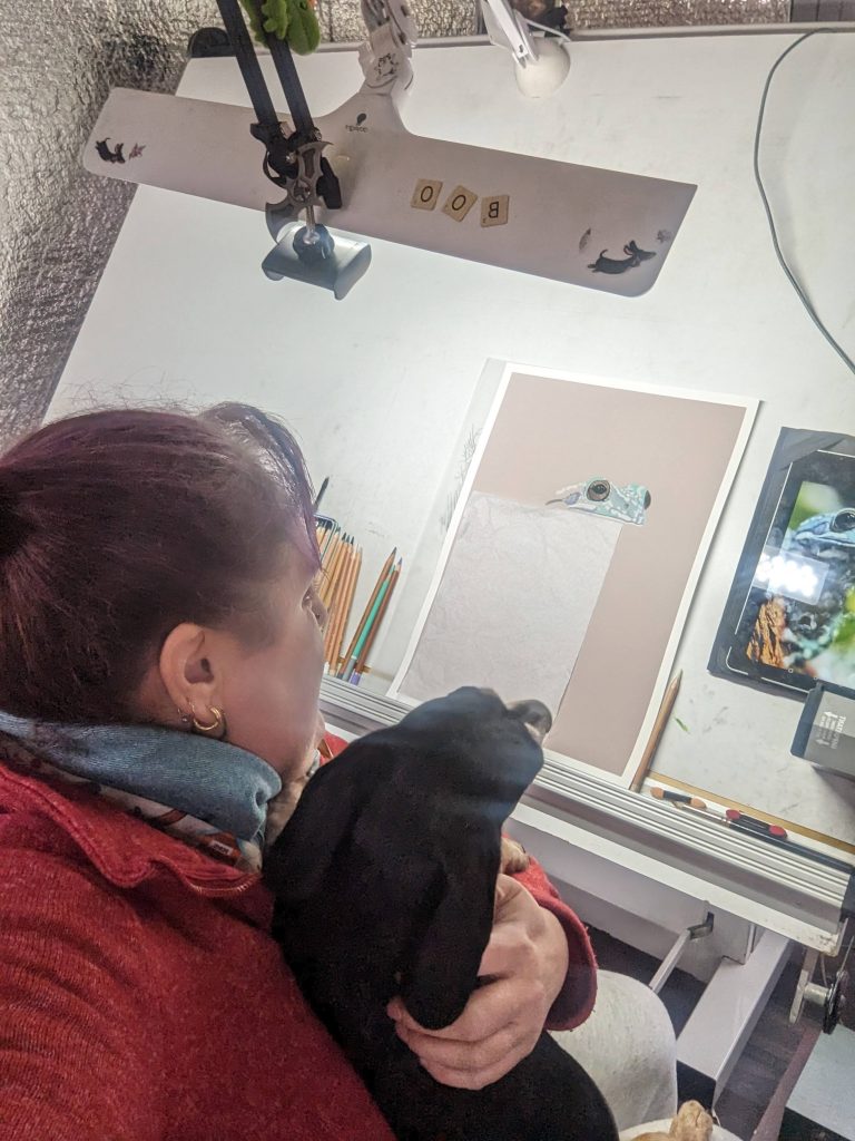 This time, she didn’t return to cartoon characters—she craved a challenge. Horses and wildlife became her focus, and she explored various mediums until she discovered her favourite: soft pastels and pastel pencils. As her skills grew, family and friends began requesting pet portraits, and DeeDackelsaArt was born—a name that paid tribute to her own identity and her favourite dog breed.