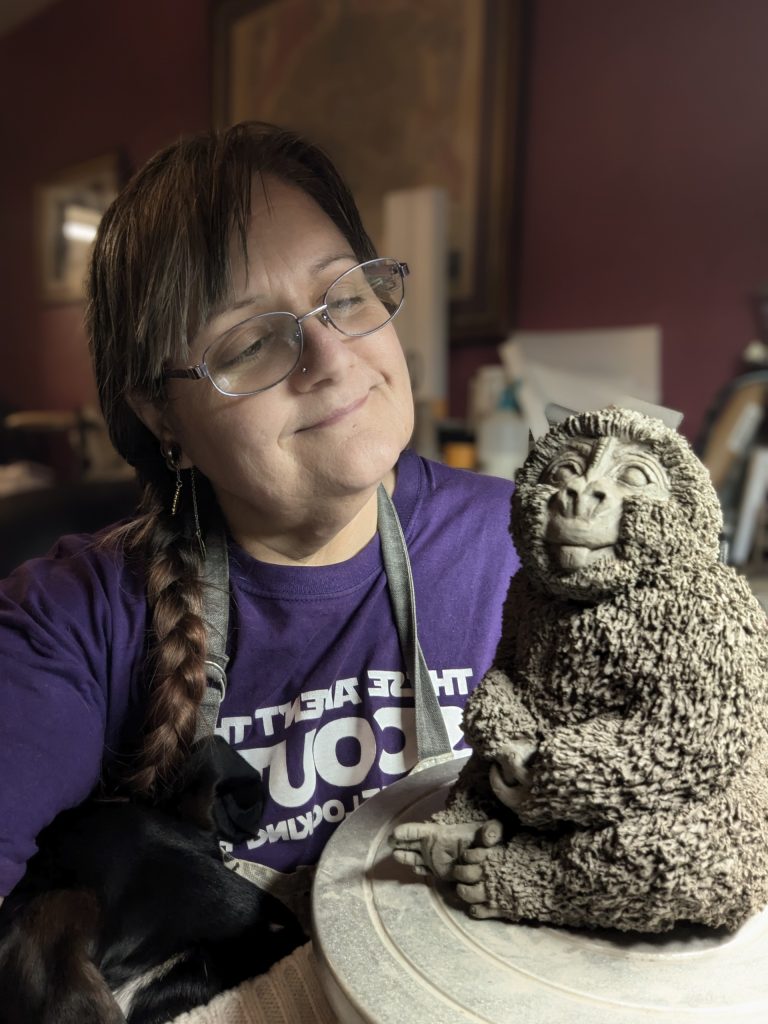Hi, Meet Katie, the incredible tech wizard. This studio wouldn’t be possible without her, not only does she keep things like this website running smoothly, she also had the bright idea to get the Elgato microphone and webcam that lets me live-stream and create videos of my work – making it possible to share my sculpting journey with all of you.