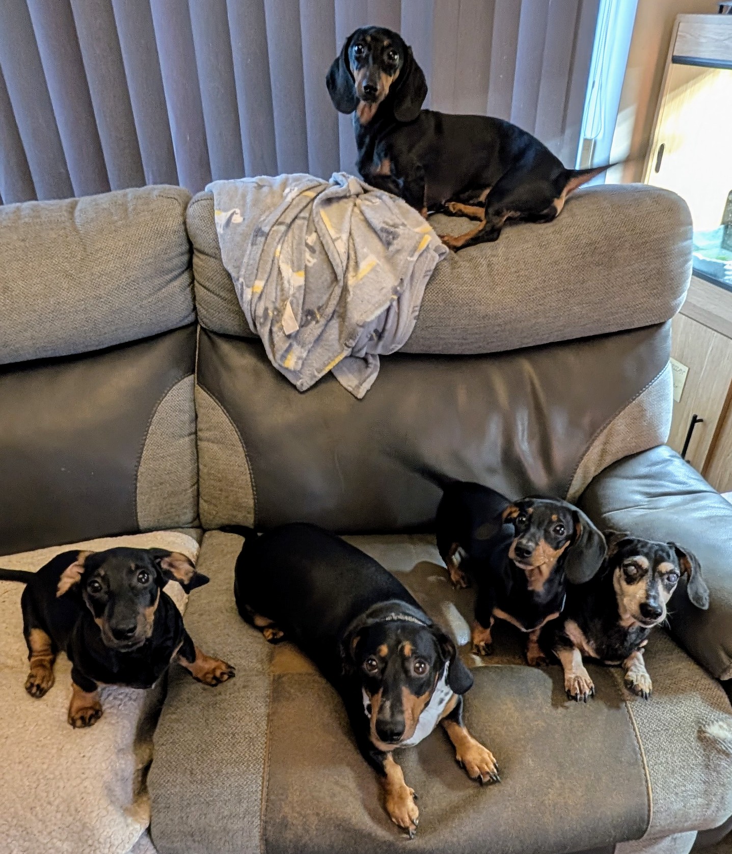 Their home is filled with love for the animals they’ve rescued and their cherished miniature dachshunds, Moomin, Raffles, Purdey, Bear and Mishka, who bring joy and companionship every day. Though they mourn the loss of their beloved husky, Bonnie, their commitment to giving rescues a loving home remains unwavering.