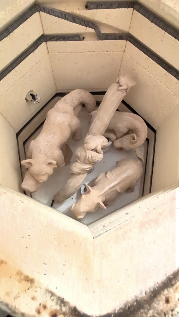 However, the one thing I did find when using her, is she’s not really big enough.  It will take me forever and constant firing daily, to even try and get on top of all the sculptures that I’ve got waiting to go in and be fired, then glazed, then fired again, I’ll be there till the end of the year, so my first big aim was to save and find a larger kiln.  I don’t want something huge, but something about 18″ to 25″ would be great for me.