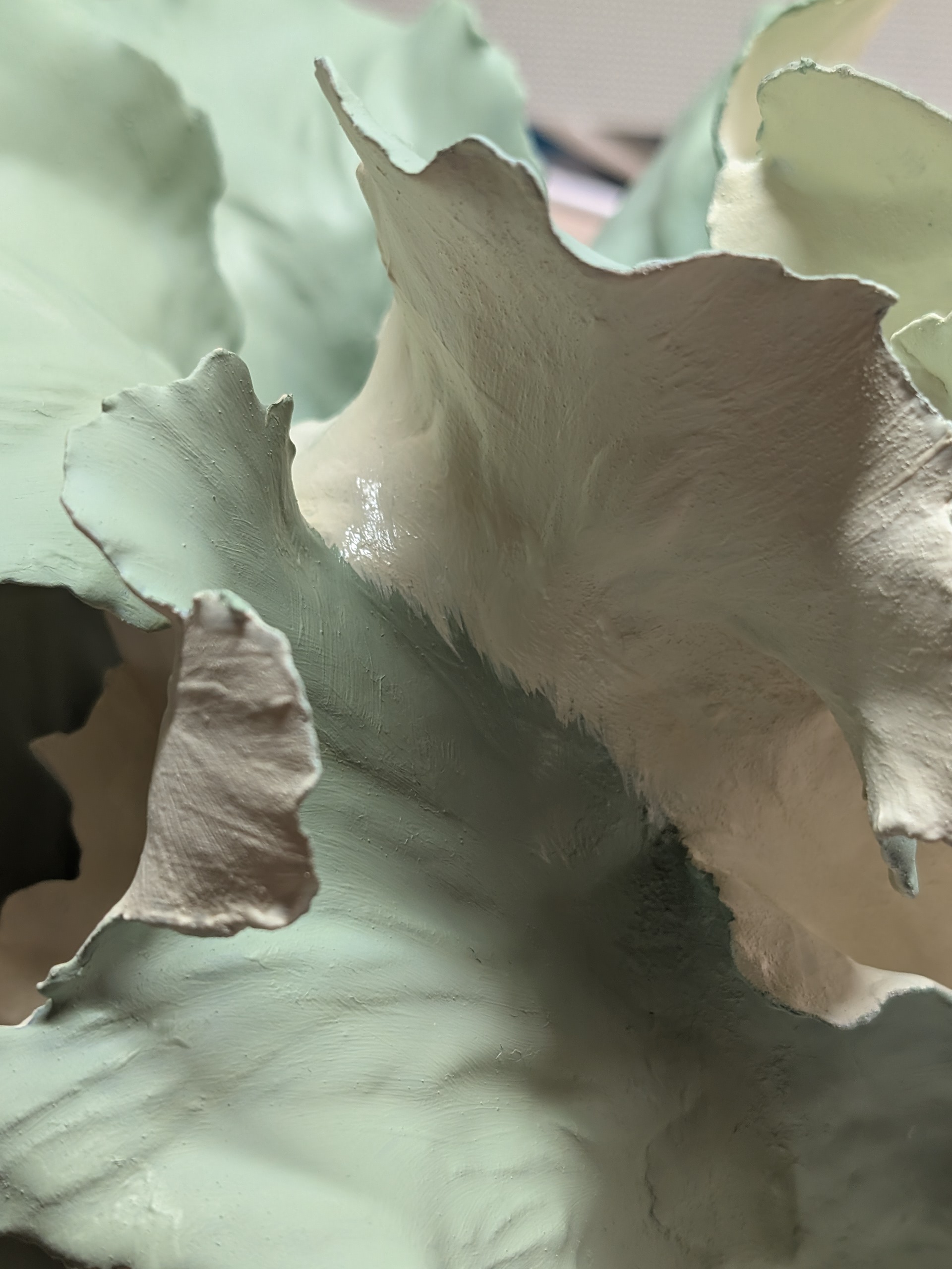 This sculptural vase captures the graceful movement of a forest in motion. Its undulating, leaf-like forms seem to dance around the central space, evoking the rhythm of nature and the gentle sway of foliage in the wind. The soft green tones enhance its organic feel, while the interplay of curves and edges draws the eye, creating a sense of life and energy even in a still object. Designed to bring a touch of the wild into domestic spaces, this piece celebrates the elegance and vitality of nature.